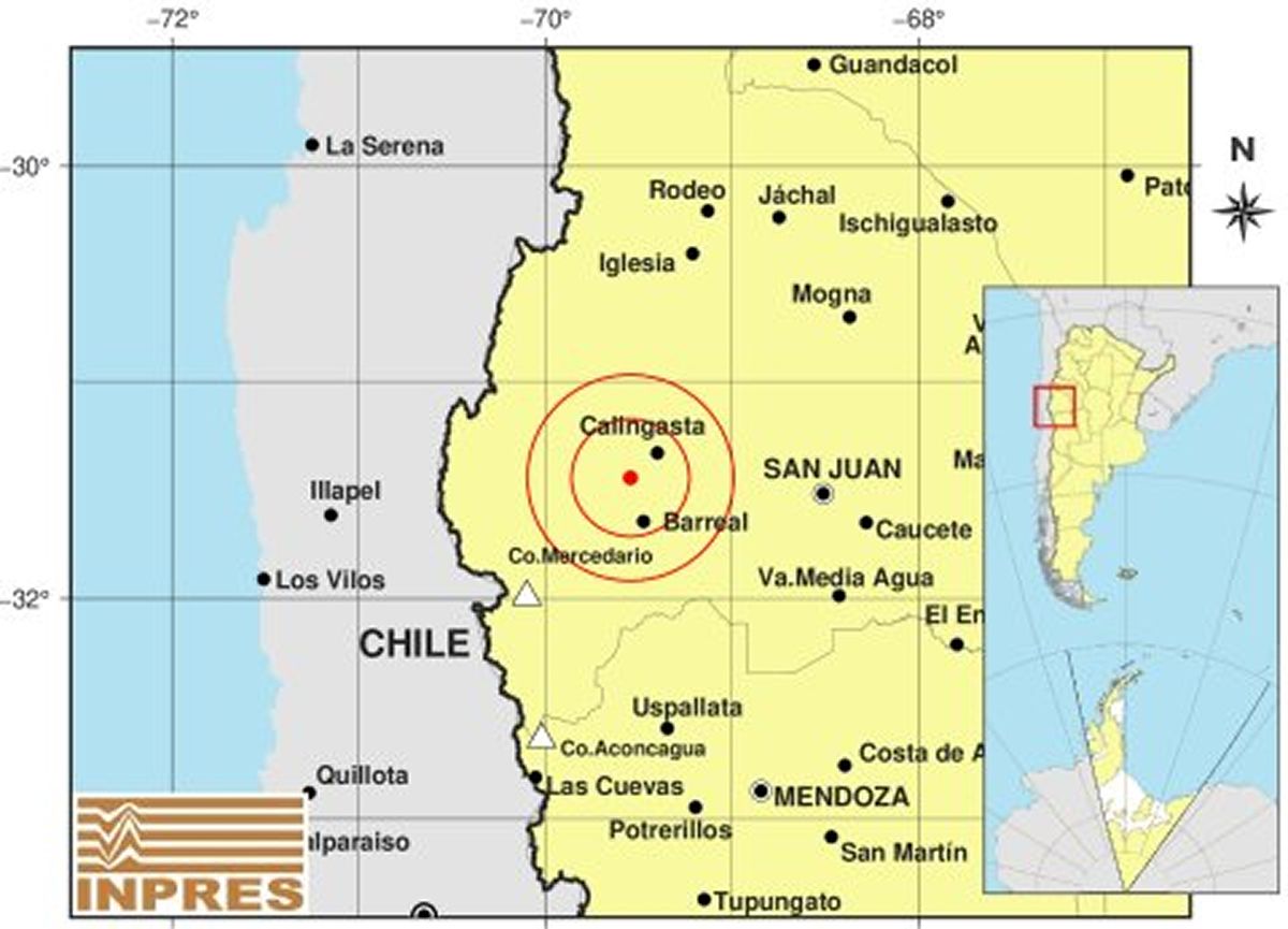 El segundo sismo llegó a las 5.02 de la madrugada con una intensidad de 2.8 grados. Se produjo a 109 kilómetros de profundidad y tuvo epicentro a 24 kilómetros al norte de San Juan y 32 kilómetros al sudeste de Talacasto.