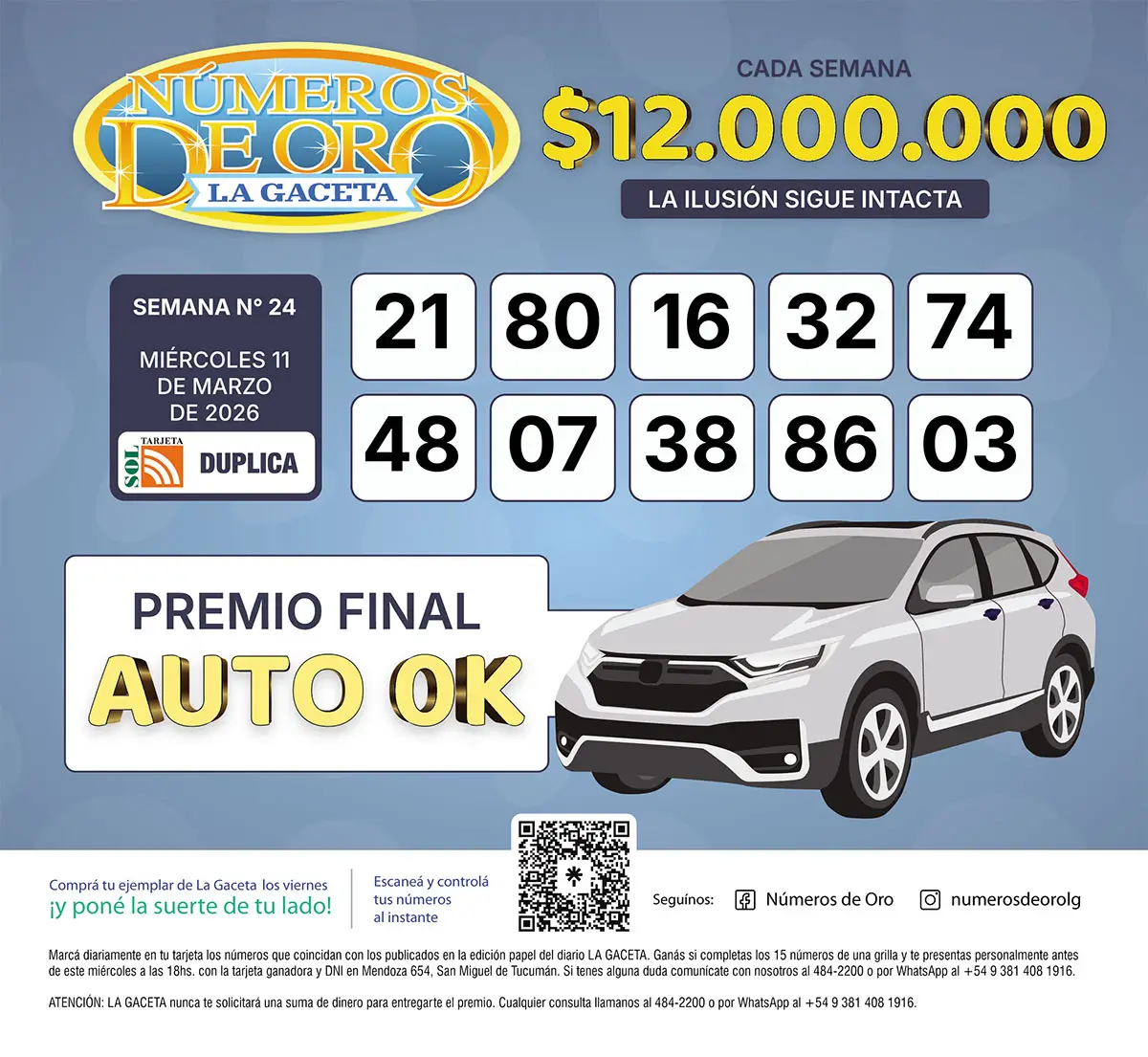 Números de Oro Los Números de Oro de LA GACETA del 11 de marzo de 2026 Compartir Whatsapp Facebook X Copiar dirección URL 11 Marzo 2026 Seguir en Esta nota es de acceso libre. Temas Números de Oro de LA GACETA Tamaño texto Comentarios Lo más popular Tres ex Pumas y figuras internacionales: Pampas, la prueba más dura para Tarucas Si no tenés escaleras en casa, en la ciudad podés hacer el ejercicio que reduce la muerte prematura Fórmula 1: horarios del GP de China y dónde ver a Franco Colapinto este fin de semana La UNC lanzará 12 tecnicaturas gratis y a distancia para estudiar en 2026 Emprendedores argentinos crearon una app que cambia cómo se pide y paga en bares Cinco trucos de NotebookLM para estudiar más rápido antes de un examen