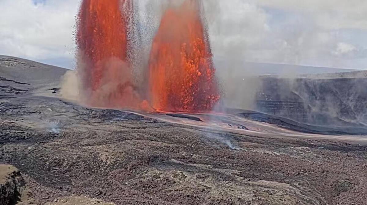 El coloso inició desde este martes la expulsión de columnas de fuego. El chorro alcanzó nada menos que los 300 metros de altura, obligando al cese de actividad en regiones como la Isla Grande de Hawái. Las inquietantes imágenes revelan columnas de material incandescente de color rojo y naranja eléctrico saliendo disparado desde la base montañosa.