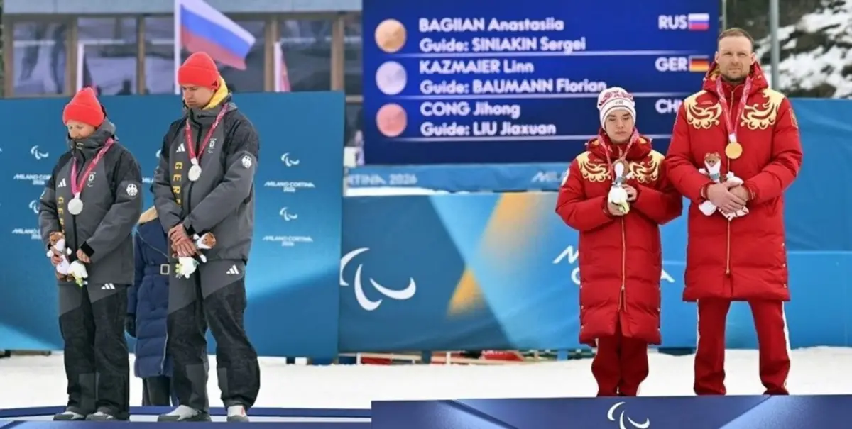 El primer momento de incomodidad se vivió durante la premiación del sprint clásico. Mientras sonaba el himno ruso y se izaban las banderas, la alemana Linn Kazmaier y su guía Florian Baumann decidieron no mirar hacia el podio ni quitarse los gorros, en señal de protesta por la decisión del Comité Paralímpico Internacional.