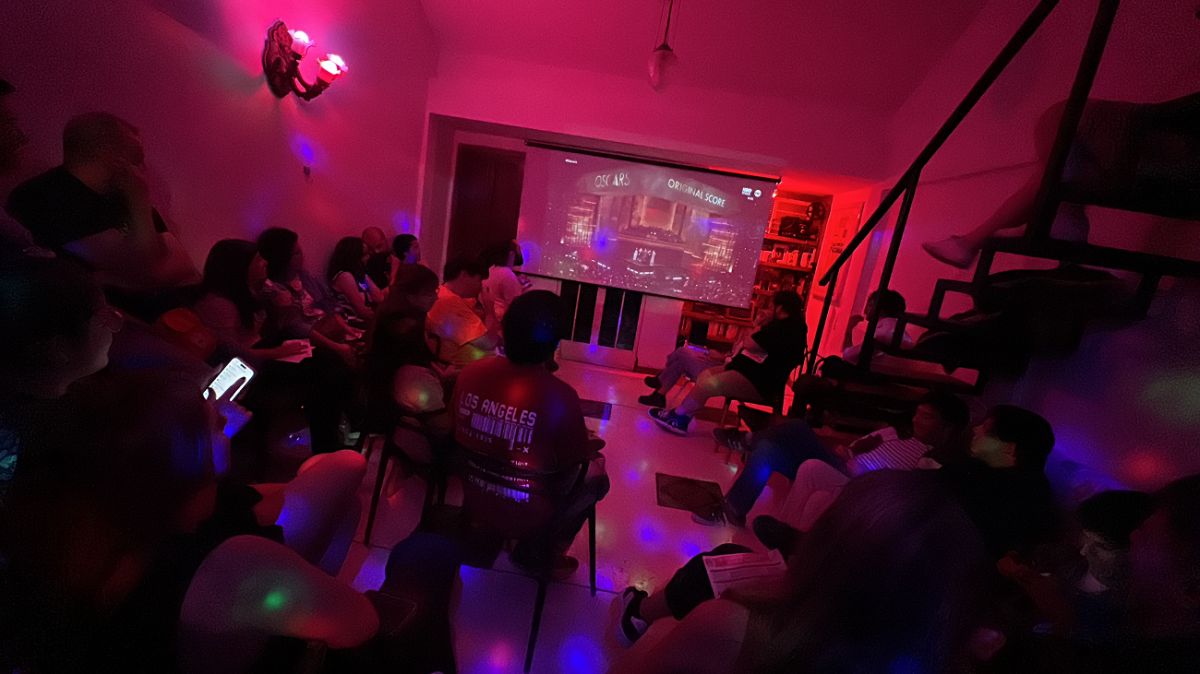 Desde la vereda ya se escuchaban los gritos. Risas, discusiones y aplausos que subían por la escalera del estudio en la esquina de Piedras y Libertad. Adentro, un living lleno de sillas improvisadas, cerveza en mano, humo de narguile y un proyector. Podría tratarse de un clásico, o de una final del mundo pero no, era la ceremonia de la 98.ª edición de los Premios Óscar desde el cineclub La Vecindad Estudio.