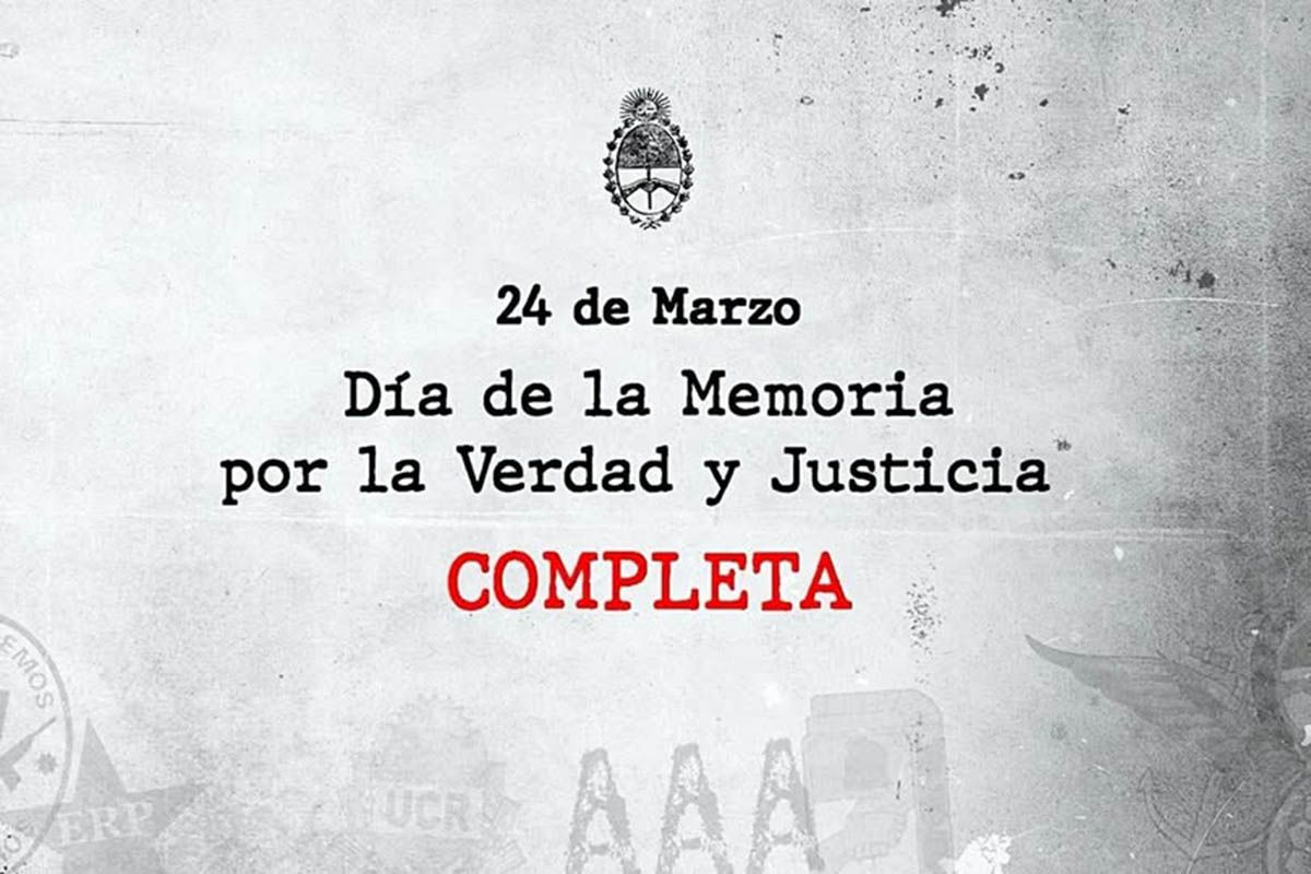 Al cumplirse 50 años del derrocamiento de María Estela Martínez de Perón, las autoridades nacionales publicarán un mensaje por el “Día de la memoria por la verdad y la justicia”, a la que le agregan la palabra “completa.