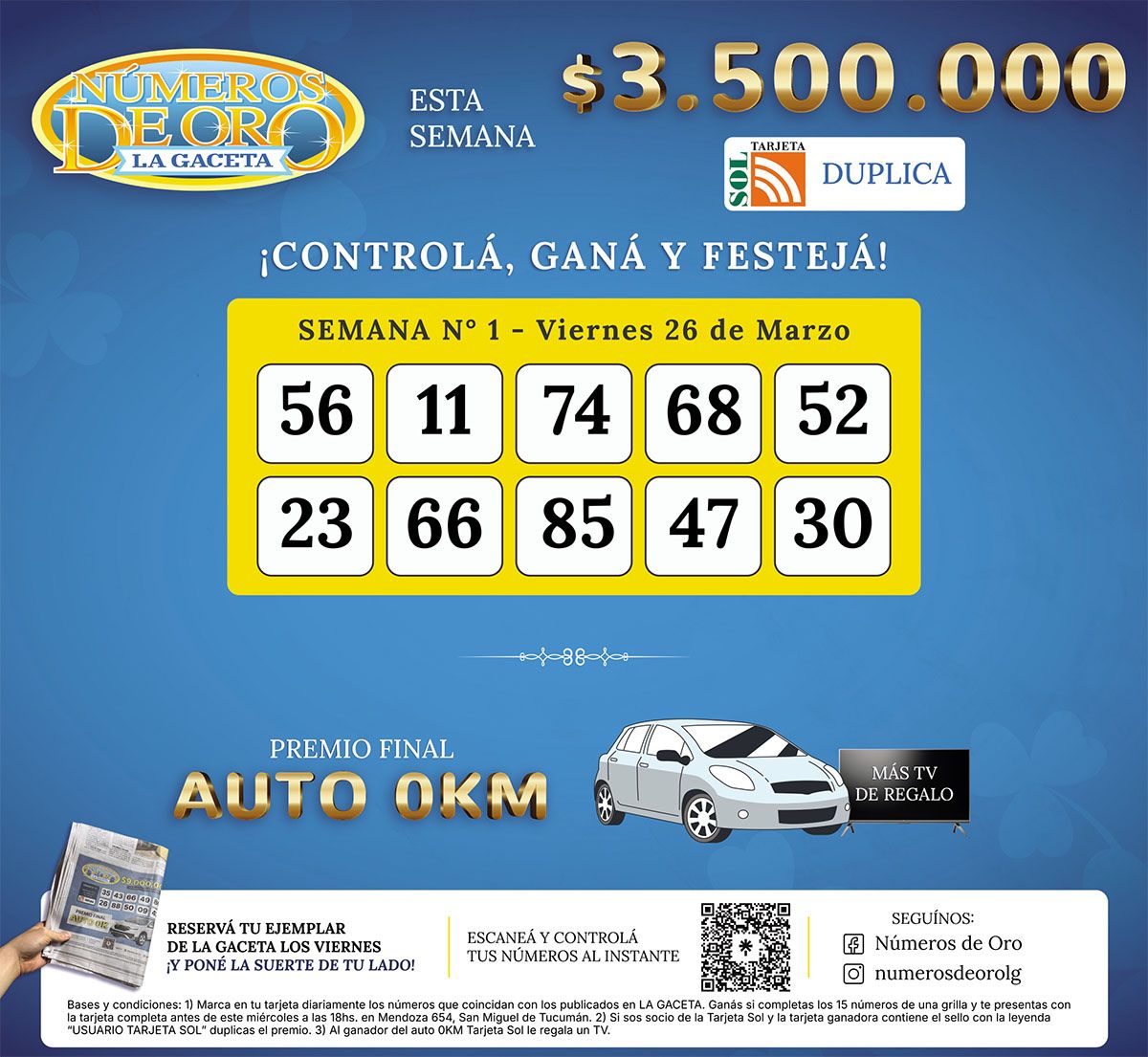Números de Oro Los Números de Oro de LA GACETA del 27 de marzo de 2026 Compartir Whatsapp Facebook X Copiar dirección URL Hace 8 Hs Seguir en Esta nota es de acceso libre. Temas TucumánAppleYerba BuenaNúmeros de Oro de LA GACETAWhatsApp Tamaño texto Comentarios Lo más popular ¿Dónde trabajar hoy? Los jóvenes y una decisión clave: quedarse o irse de Tucumán Aprender en la era digital: cuáles son los principales consejos de los referentes educativos en Tucumán El caso Noelia Castillo Ramos: qué ley rige en Argentina sobre la eutanasia y qué opinan los especialistas Tarucas lanza un 2x1 con Club La Gaceta para llenar el estadio ante Cobras de Brasil Macbook Neo: ¿Cuánto cuesta comprar en Argentina la computadora más barata que lanzó Apple? Crece la tensión en Yerba Buena: Garolera fue internada y pidió una perimetral contra Aráoz