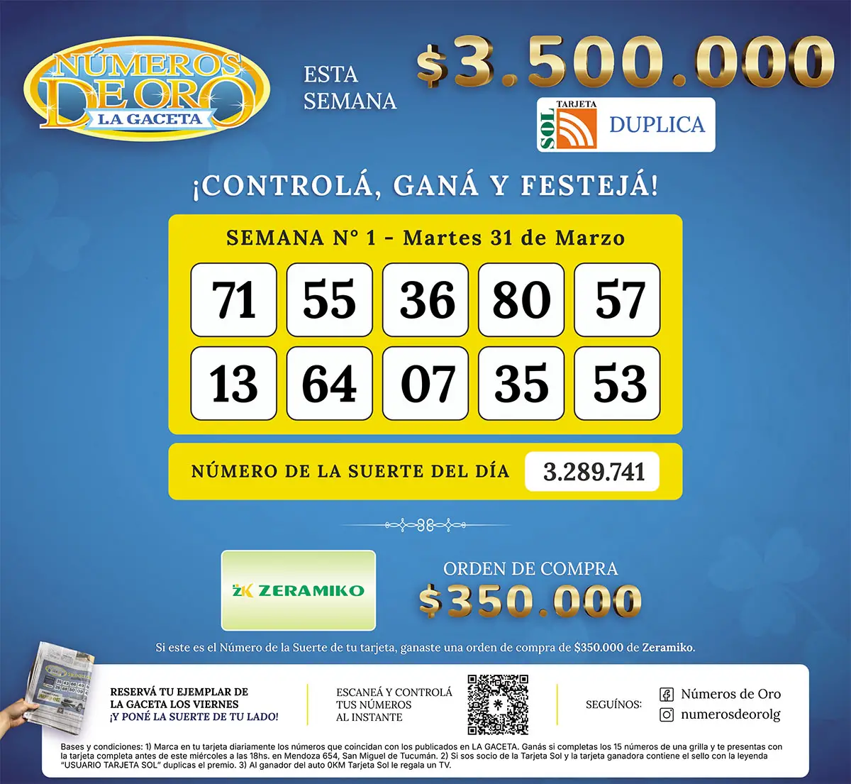 Números de Oro Los Números de Oro de LA GACETA del 31 de marzo de 2026 Compartir Whatsapp Facebook X Copiar dirección URL Hace 8 Hs Seguir en Esta nota es de acceso libre. Temas Mercedes SosaNúmeros de Oro de LA GACETAWhatsAppRaúl AlfonsínArgentina Tamaño texto Comentarios Lo más popular Adorni busca aire político mientras avanza la Justicia Acevedo afirmó que se retomará el Plan Hídrico Estratégico de Tucumán para evitar inundaciones Costo de vida: ¿qué pasará con los precios? La Legislatura dispuso que se conectarán áreas protegidas en Tucumán El país que sólo existe cuando la Selección juega el Mundial ¿Cómo piensa Amanda Askell, la filósofa de la inteligencia artificial?
