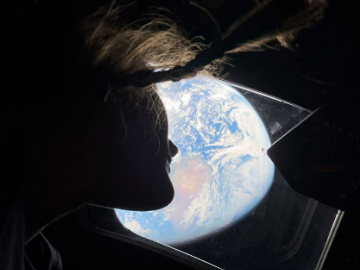 VISTA DE LUJO. Christina Koch observa la Tierra desde la ventana de la nave Orion durante el vuelo de Artemis II. / NASA