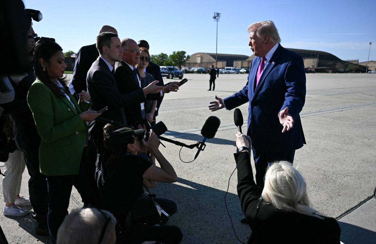 RETIRADA. Trump habla con la prensa antes de subirse al avión presidencial con destino a su casa de campo.