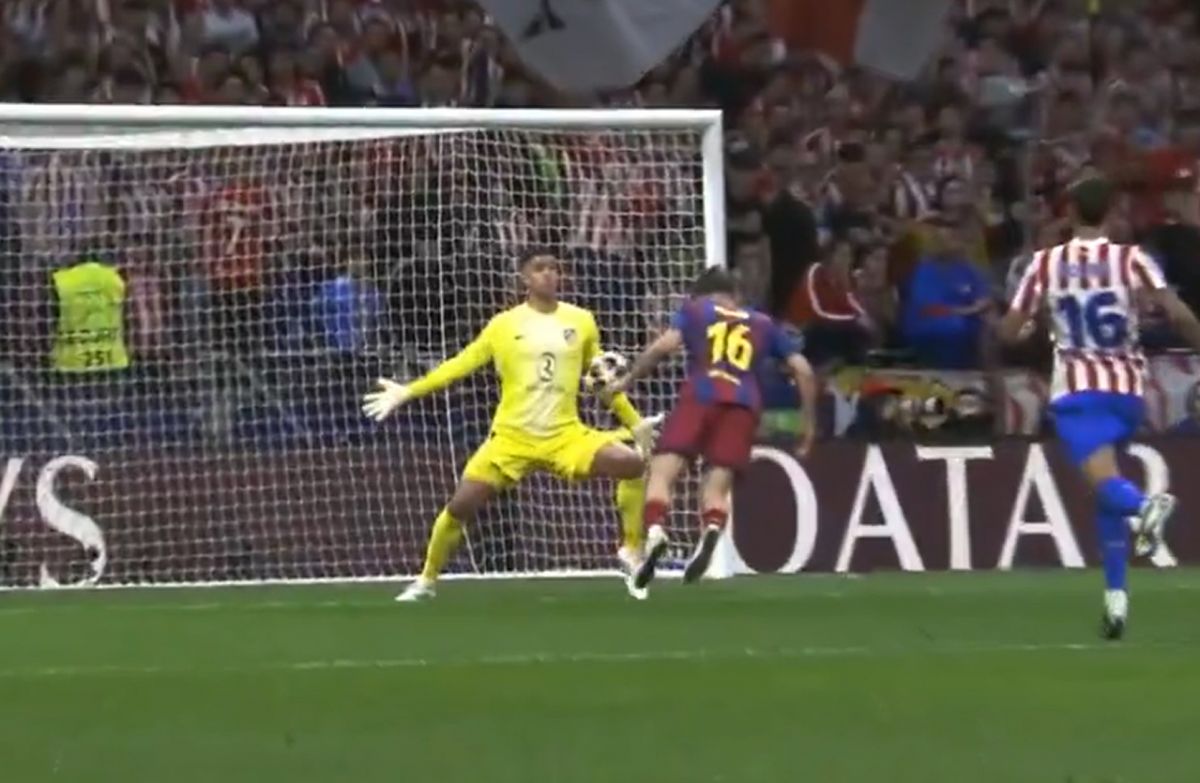 La acción llegó en un momento límite. Apenas después del 2-0 parcial, el Barcelona tuvo en los pies -y en la cabeza- la chance de liquidar la serie. Tras un centro preciso de Lamine Yamal, Fermín López apareció solo en el área y conectó de cabeza en un mano a mano claro.