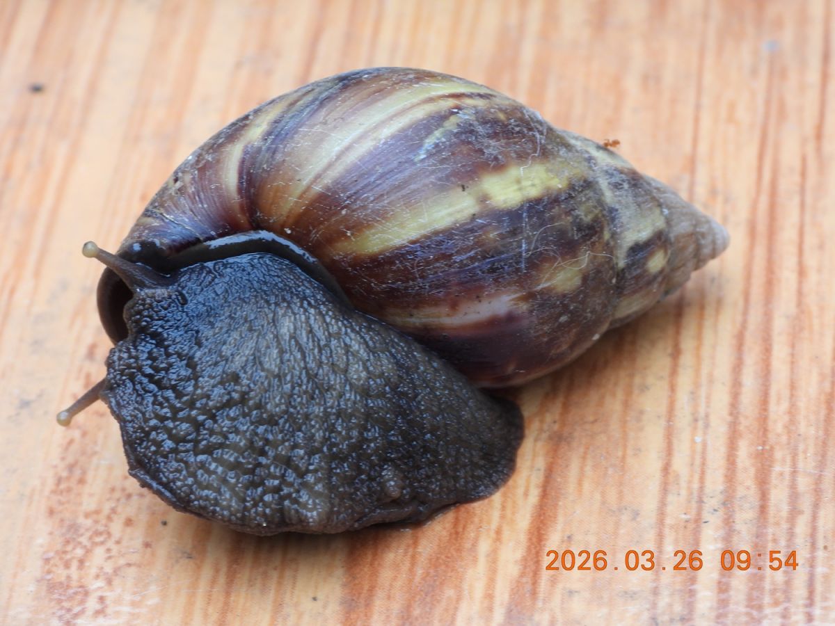 EL TEMIBLE caracol gigante africano. Foto EUGENIA SALAS OROÑO y EXEQUIEL BARBOZA