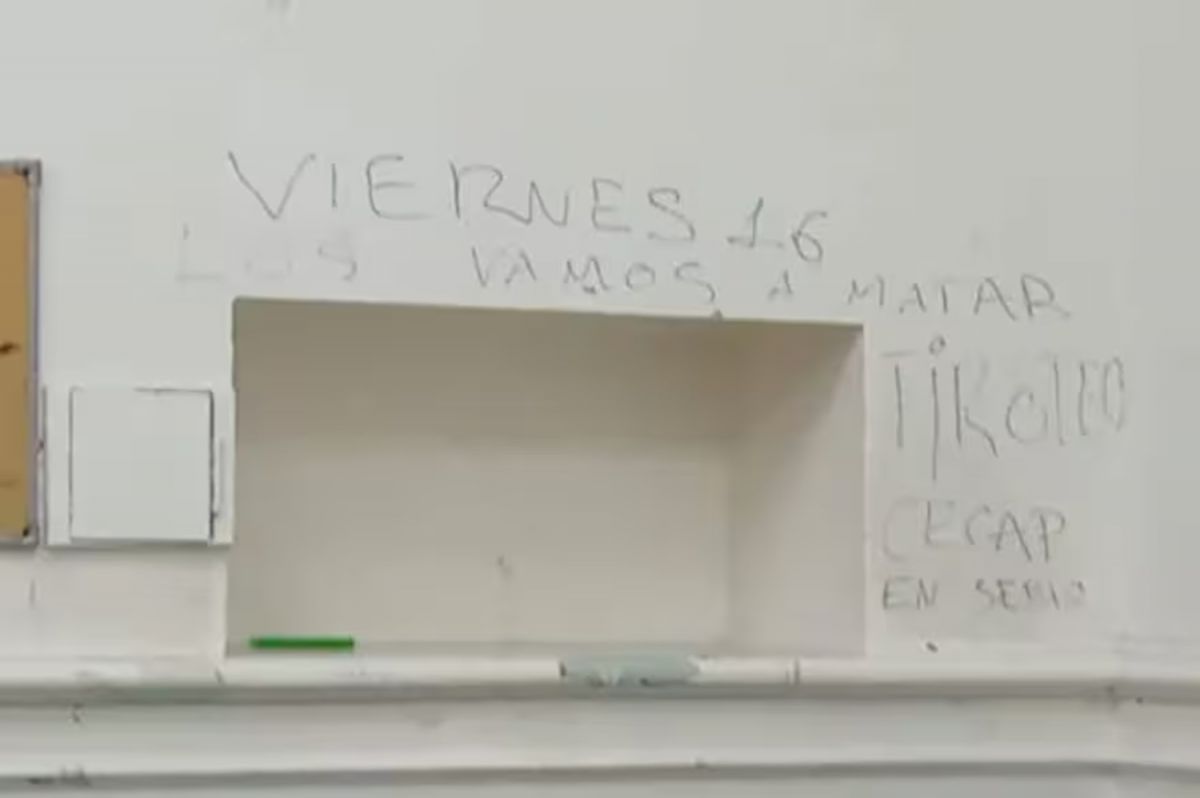 En el grafiti podía leerse: “Viernes 16 los vamos a matar, tiroteo CECAP en serio”, escrito con tinta negra sobre una pared. El hecho ocurrió en el tradicional colegio ubicado en el barrio porteño de Recoleta.