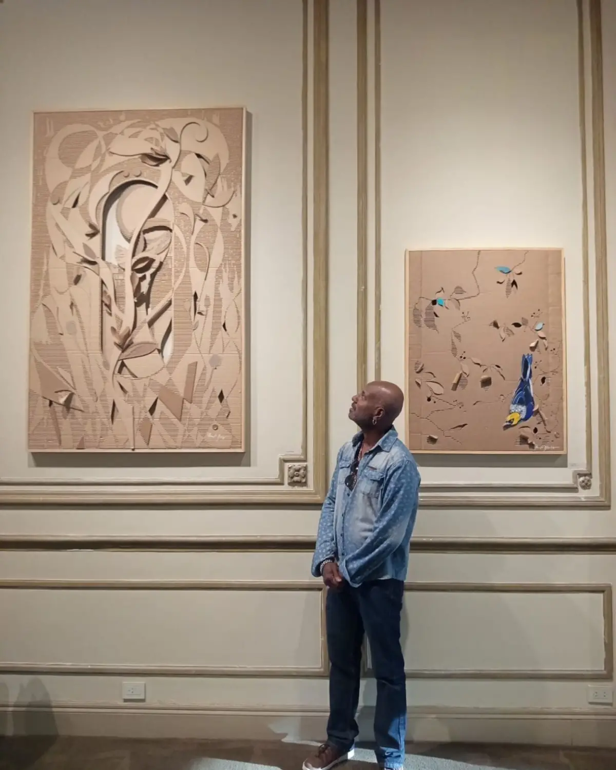 En las salas del Centro Cultural Rougés, frente a la plaza Independencia, la siesta va terminando y los ruidos de la calle empiezan a hacer lo suyo. Pero hay en la obra de Paulo Neris una invitación al silencio que rivaliza contra cualquier bullicio. Un silencio que se contagia desde los cortes minuciosos, obstinados, casi invisibles, que convierten al cartón -ese material descartable, cotidiano, condenado a la calle- en una trama de hojas, aves y formas orgánicas que parecen respirar. Entre sombras y relieves, Paulo observa sin intervenir demasiado. “Primero hago para mí -dirá después, con una convicción tranquila-. Y recién cuando veo la reacción del público, entiendo si voy por el camino correcto”.