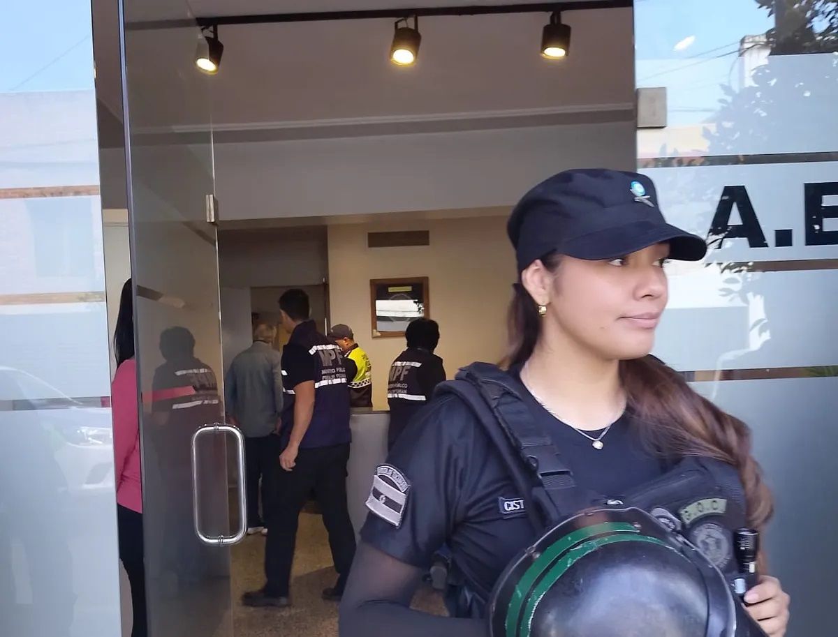 LA POLICÍA EN EL LUGAR. Buscan documentación clave para la causa. LA POLICÍA EN EL LUGAR. Buscan documentación clave para la causa. FOTO GENTILEZA LV12