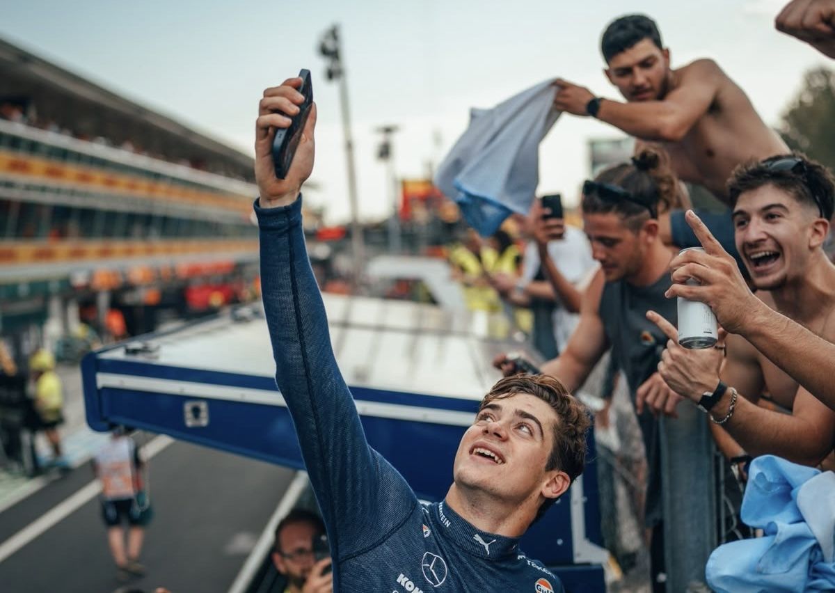 Por un lado, forma parte de esa escena donde corre en estructuras de primer nivel, se mueve dentro del universo de la Fórmula 1, maneja autos que valen millones y responde a una lógica donde todo —desde la tecnología hasta la exposición— está en otra escala.