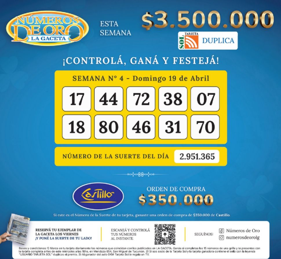 Números de Oro Los Números de Oro de LA GACETA Compartir Whatsapp Facebook X Copiar dirección URL Hace 6 Hs Seguir en Esta nota es de acceso libre. Temas Buenos AiresEl PaísNúmeros de Oro de LA GACETAWhatsAppURLLLA Tamaño texto Comentarios Lo más popular Entre el peronismo y LLA: el “no lugar” de los ex Juntos por el Cambio Padres e hijos nunca habían habitado en mundos tan distintos Esta campaña Dalbulus maidis apareció en maíces recientemente implantados La suba del gasoil eleva los gastos en soja y en maíz CampoLimpio impulsó una jornada sobre la Ley de Envases Vacíos de Fitosanitarios Girasol: más de 2 millones de hectáreas sembradas en el país