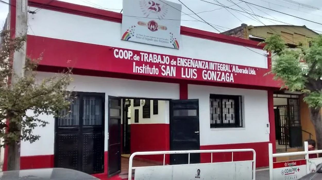 SAN LUIS GONZAGA. Frente del instituto donde se activó el protocolo de seguridad tras la circulación de frases violentas que alteraron la rutina escolar.
