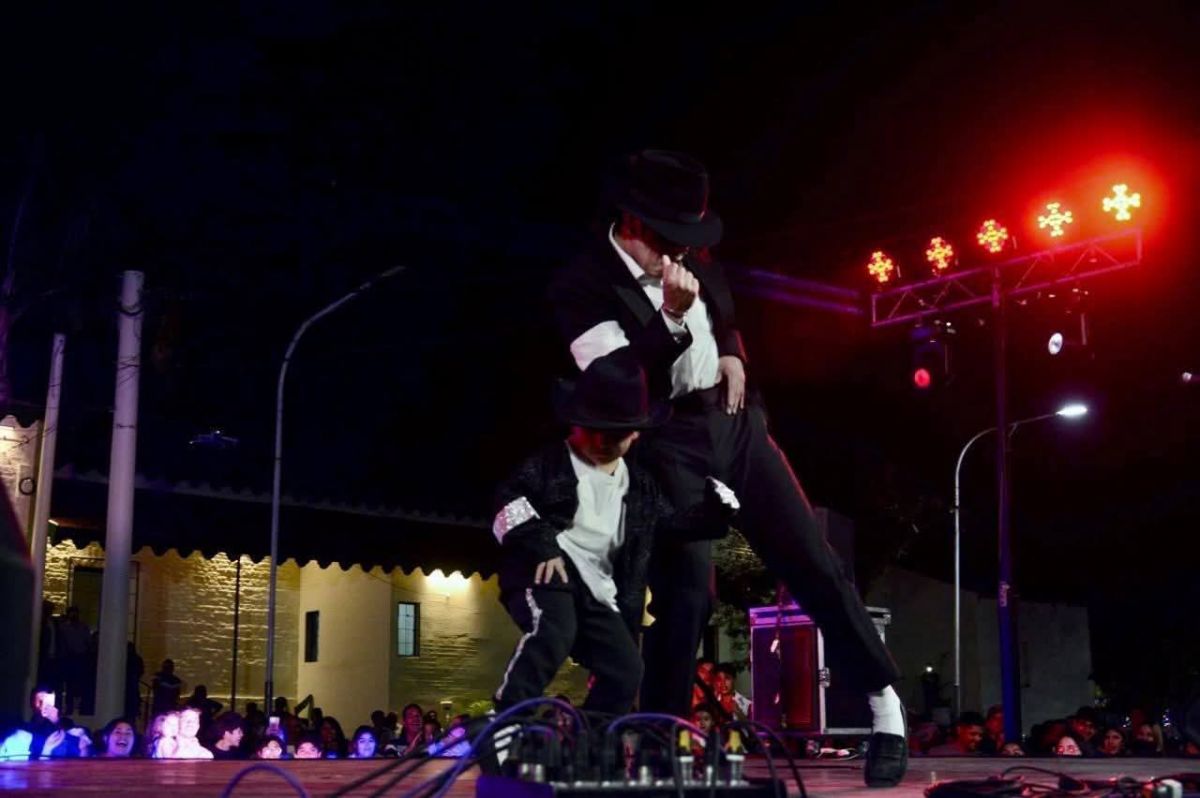 ESCENARIO. Joaquín, de 4 años, bailó en Lules junto a un imitador de Michael Jackson. / GENTILEZA DE LUCILA RODRIGUEZ