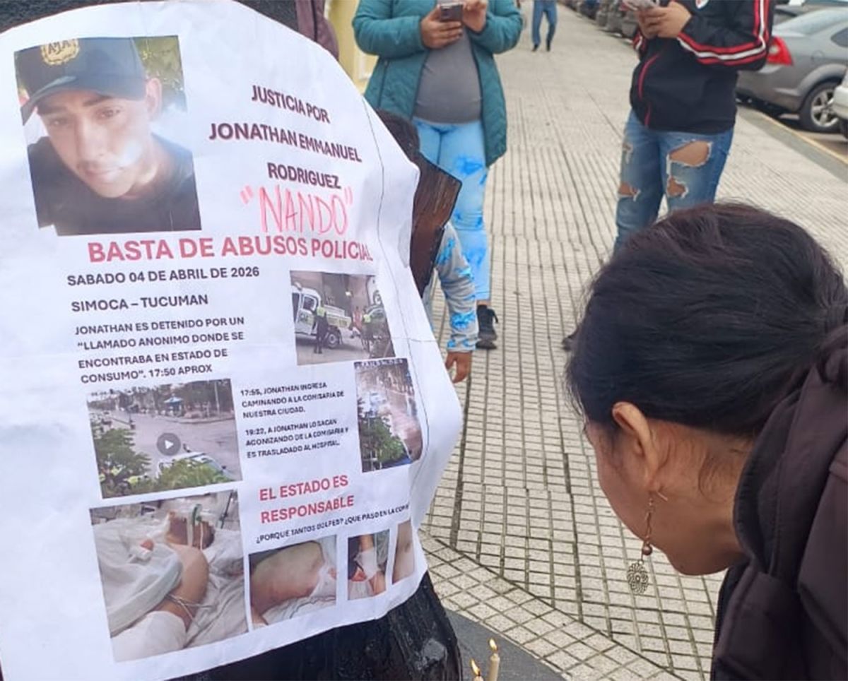 - La Justicia investiga la muerte de Jonathan Rodríguez tras ser detenido en Simoca el 6 de abril. Su familia denuncia apremios ilegales, pese a que la autopsia indica broncoaspiración.