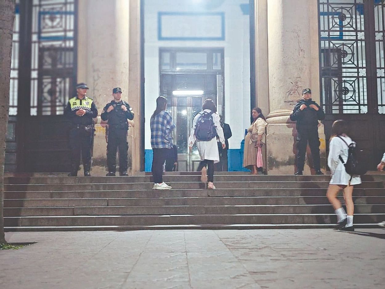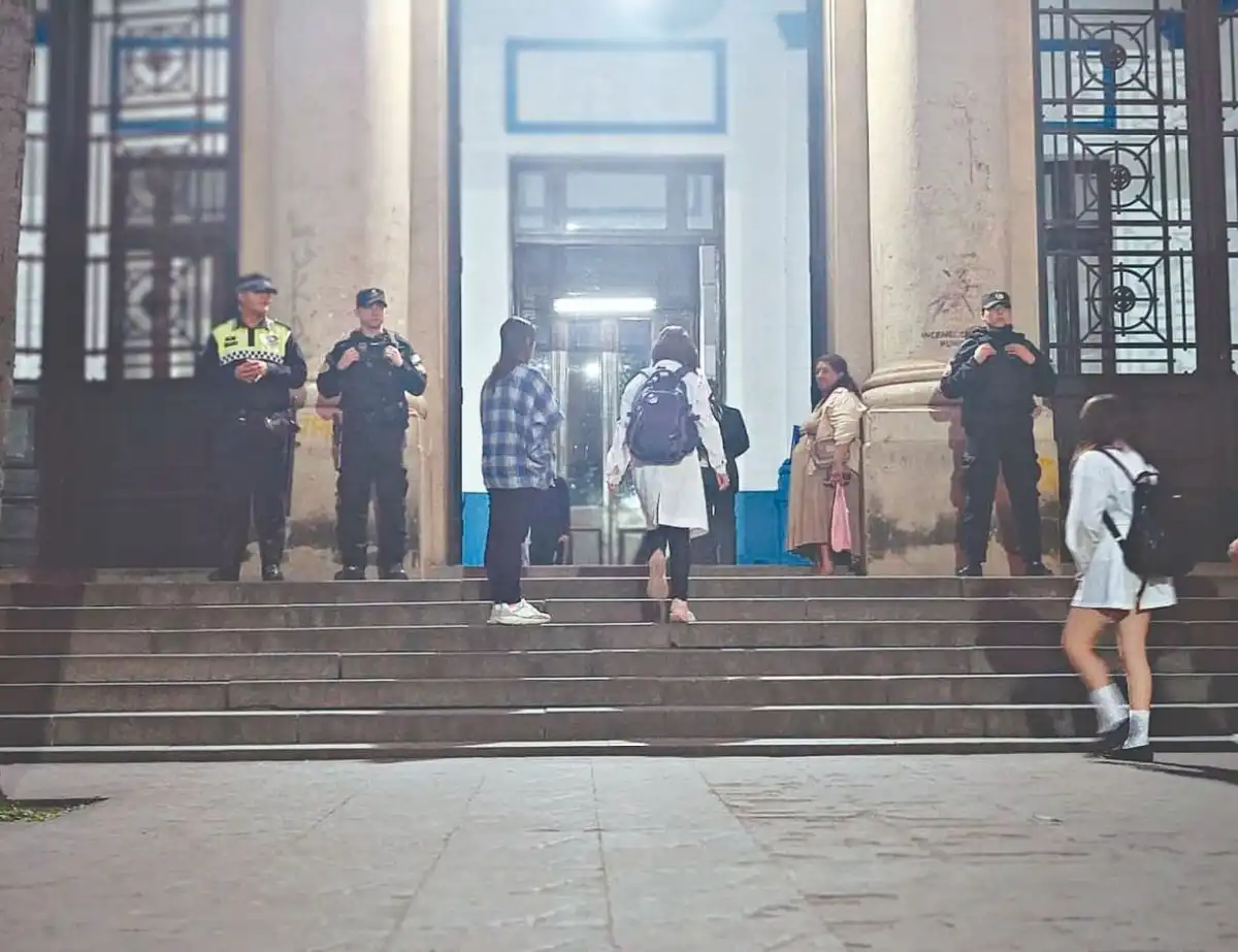 La presencia de custodia policial en el ingreso del Colegio Nacional Bartolomé Mitre es la imagen de la semana elegida por los editores de LA GACETA.