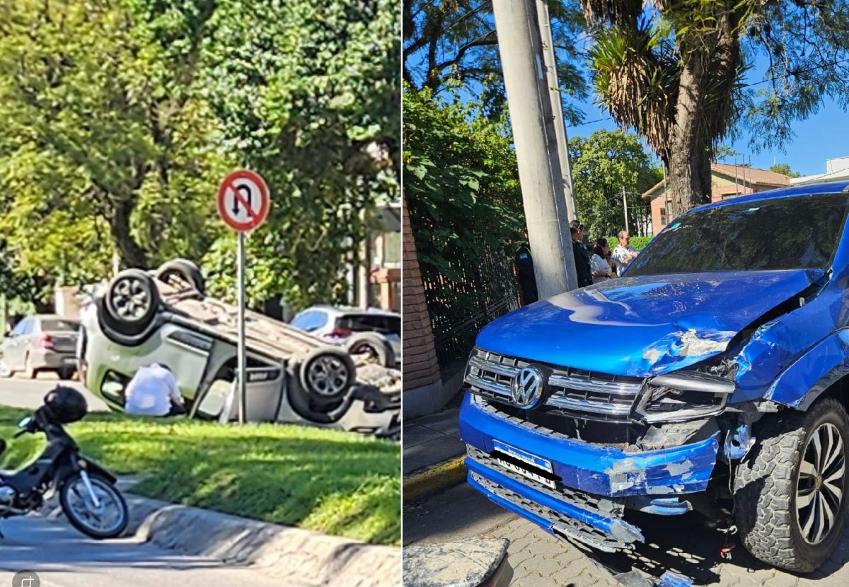 - Un auto volcó este domingo en la avenida Aconquija al 600, Yerba Buena, tras colisionar con una camioneta Amarok. Pese a la violencia del impacto, no hubo heridos de gravedad.
