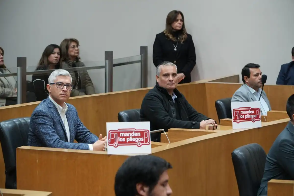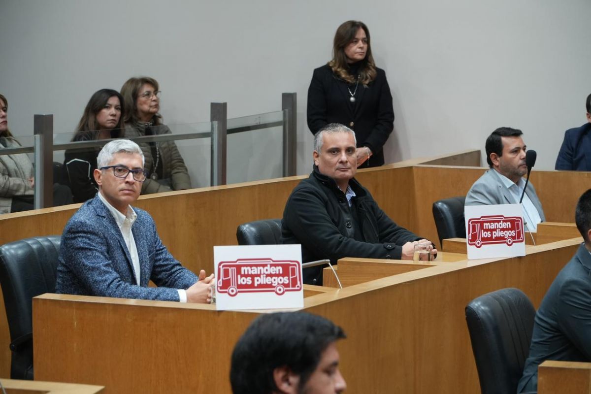 Durante la sesión parlamentaria del Concejo Deliberante capitalino, los radicales José María Canelada y Gustavo Cobos plantaron en sus bancas carteles con un pedido explícito al municipio: que “manden los pliegos” de las líneas de colectivos para avanzar en la normalización del transporte público.