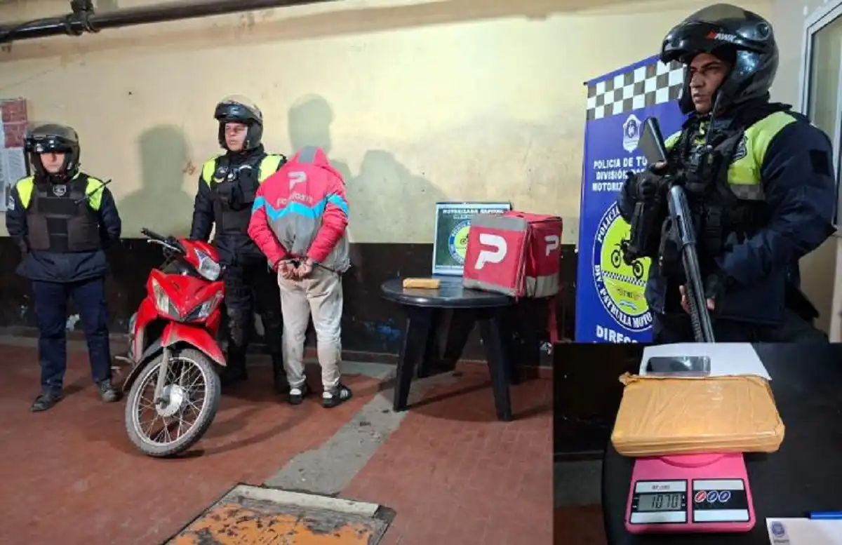 - La policía de Tucumán detuvo este martes a un hombre disfrazado de repartidor de Pedidos Ya con más de un kilo de cocaína tras un control de rutina y una breve persecución.