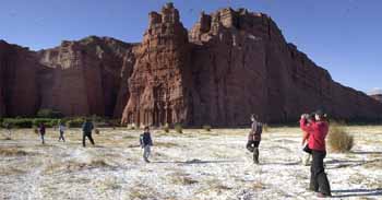 LOS CASTILLOS. Junto al río Las Conchas y contrastando con la blancura del suelo salitroso, se erigen montañas donde la caprichosa naturaleza esculpió asombrosos relieves.