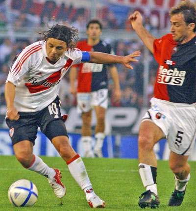 TODA LA MAGIA. Marcelo Gallardo escapa a la marca de Romagnoli. El “Muñeco” mostró su talento.