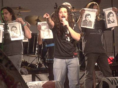 El recital tuvo, como ocurre generalmente, momentos emotivos, como cuando con el el tema "Angeles" empezaron a desfilar atrás de los músicos diez chicos que mostraron las fotos de un centenar de desaparecidos durante la dictadura. "Tenemos que ejercitar la memoria, no olvidar y aprender de los errores para vivir en un futuro mejor... yo confío en ustedes, y sé que si hubieran estado acá Bussi no habría vuelto", le dijo el cantante Tony Molteni a la abrumadora mayoría de adolescentes.