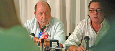 Busti hizo el planteo durante una conferencia de prensa en un hotel de Gualeguaychú, junto a su vice Pedro Gustavino y al ministro de Gobierno, Sergio Urribarri. (Télam-DyN-NA)