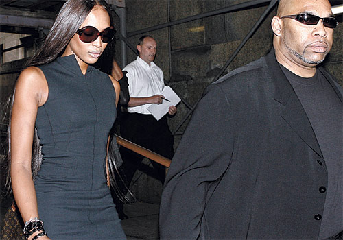 En medio de una muchedumbre de periodistas, Campbell, de 35 años, ingresó ayer al Tribunal Penal de Manhattan con un simple vestido negro de cuello alto y sin mangas, zapatos de taco aguja negros, pulsera en el tobillo y la cara escondida tras enormes anteojos de sol.