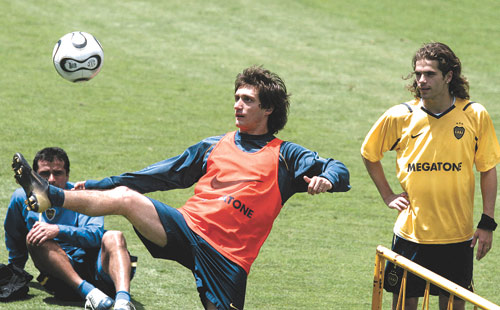 DOS SI, UNO NO. Barros Schelotto y Gago estarán desde el arranque ante la “academia”, mientras que el “Chelo” esperará su turno en el banco.(DYN)