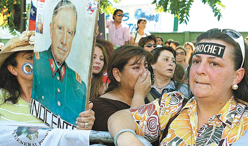 Santiago de Chile.- Corrían las lágrimas por el rostro de los simpatizantes de Augusto Pinochet, mientras desde el otro bando se descorchaban las botellas de champaña o se tocaban bocinas para festejar su muerte. Los que consideran a Pinochet el salvador del país, piden banderas a media asta y funerales de Estado, pero el otro bando aún sangra por el exilio, la tortura, las ejecuciones, las desapariciones y el hambre que ocasionó la política de represión y de shock neoliberal aplicada a fines de los años 70. Lágrimas de dolor, champaña: división...