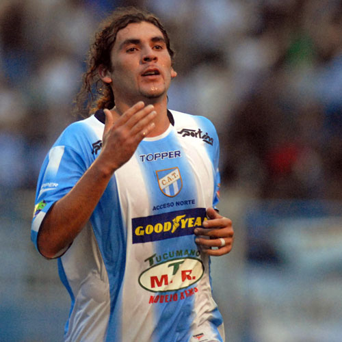 SIN ALIENTO. Aragón, agotado, sale a festejar con los suyos su gran gol. LA GACETA / FRANCO VERA