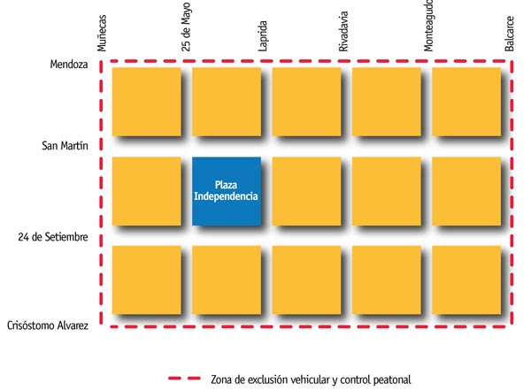 Sánchez indicó, además, que se permitirá el ingreso de los peatones a la plaza Independencia únicamente por las calles 25 de Mayo, Laprida, 9 de Julio, Congreso, Las Heras y 24 de Setiembre.