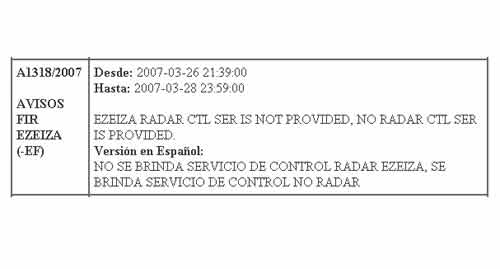 "No se brinda servicio control Ezeiza radar, se provee servicio control no radar". En el último Notam (notice to airman, noticias para los hombres de vuelo) se les comunicó a los pilotos que el aparato se encuentra otra vez sin funcionar. El anunció entró en vigencia ayer y se prolongará hasta mañana. Es decir, los aeropuertos están operando con asistencia manual.