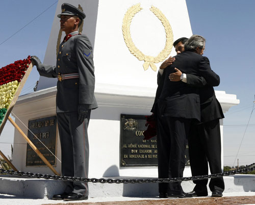 La ceremonia en Calama es parte de un esfuerzo bilateral por construir gestos que faciliten el restablecimiento de relaciones a nivel de embajadores, que se interrumpieron en 1978, tras las fallidas negociaciones binacionales para el regreso soberano de Bolivia al Pacífico. El acto, además, se produjo a sólo días de un nuevo encuentro de la presidenta chilena, Michelle Bachelet, con su par boliviano Evo Morales. Ambos mandatarios analizarán los avances en la agenda bilateral en la Cumbre Sudamericana que se celebrará Venezuela el fin de semana.