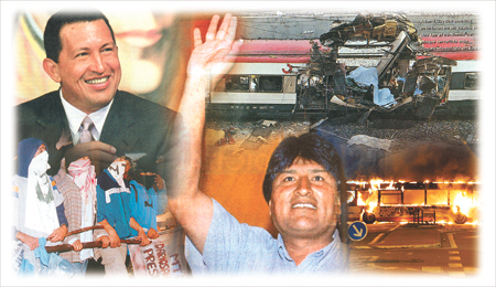 ¿Puede compensar la política como espectáculo la falta de desarrollo social? Parecería que sí. Con tal de que un gobierno logre hacer pensar que merced a sus esfuerzos el futuro será mejor que el pasado, pasarán inadvertidos detalles molestos que en otros tiempos le hubieran costado caro.Por causas no sólo internas sino también porque la economía mundial está disfrutando de una bonanza inédita, en América Latina 2005 resultó ser un buen año para la izquierda populista. El caudillo venezolano Hugo Chávez se vio beneficiado por el aumento notable del precio del petróleo; su aliado, el cocalero boliviano Evo Morales, por fin consiguió abrir la puerta de la presidencia de su país -en parte, porque muchos compatriotas se sentían hartos de los bloqueos de carreteras que había usado para demoler a varios gobiernos anteriores-, mientras que Kirchner, ayudado por el dinero generado por las ventas cuantiosas de soja y por el deseo de la mayoría de ahorrarse nuevas crisis, fue fortalecido por elecciones en las que se estima que el cuarenta por ciento de los votantes le manifestó su aprobación. Ya que Chávez, Morales y Kirchner creen que algo importante está en marcha, no sorprendería que en 2006 procuraran acelerarlo. En tal caso, las actitudes de quienes gobiernan en América del Sur divergirán aún más de las que imperan en los países más dinámicos del planeta, entre ellos Estados Unidos, China y la India.