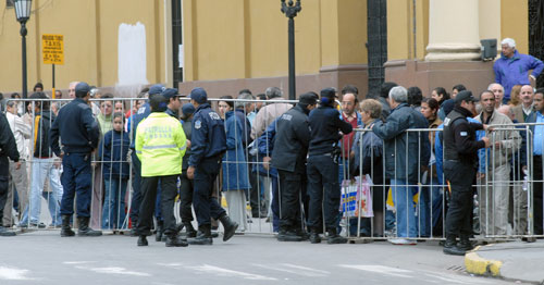 Amontonados alrededor de los policías, los transeúntes se enteraron esta mañana de la noticia. "Tiene que dar la vuelta a la manzana", le informó una policía a una anciana que, parada en la esquina de 24 de Setiembre y 9 de Julio, quería llegar a la Catedral. "Somos de Aguilares y vinimos a cumplir una promesa, por eso queremos ir a la Iglesia. Menos mal que acompañé a mi abuela, porque con todo este lío se hubiese perdido", comentó, resignada, Noemí Valdez.