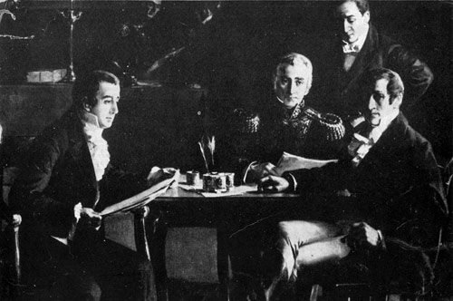 ESTAMPA HISTORICA. Detalle de un cuadro de Villa y Prades sobre la Primera Junta.