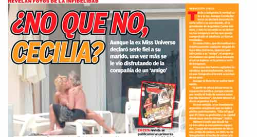 “¿Cuáles fotos?”, respondió cuando se le preguntó sobre las imágenes en que se observa a la ex Miss Universo en topless y dándole besos y caricias. Al preguntársele dónde estaba Cecilia, respondió: “no sé, creo que debe estar en Chile”.