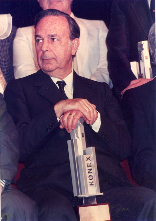 KONEX DE PLATINO. Daniel Alberto Dessein, cuando fue distinguido como el mejor periodista cultural de la década 1977-1986.