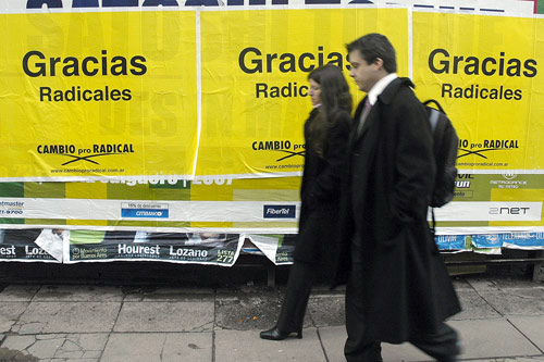 EL DIA DESPUES. Las paredes de la Ciudad de Buenos Aires aparecieron ayer con afiches de tono triunfalista de los sectores que respaldaron a Macri. NA