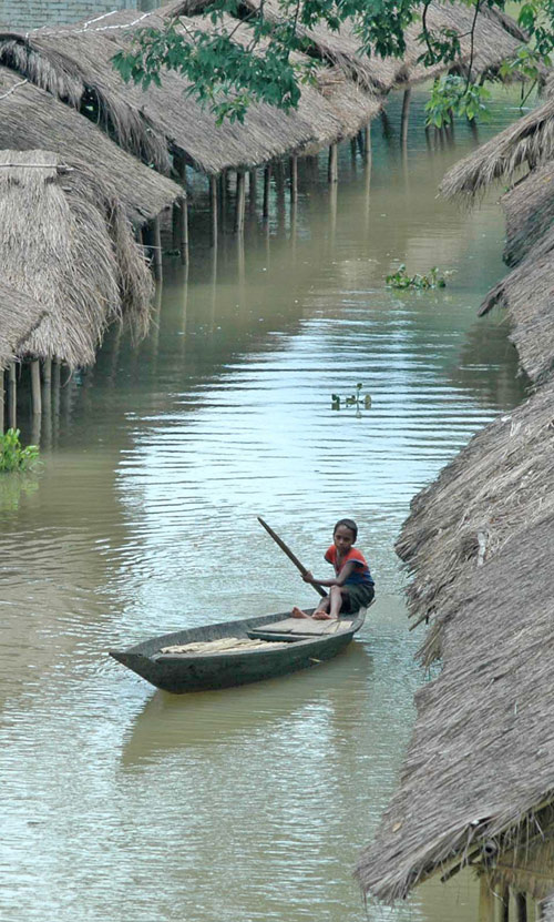 Un niño navega entre chozas inundadas de una villa al noreste de India. Las inundaciones causadas por las lluvias monzónicas en Asia causaron la muerte de más de 1.100 personas y dejaron unos 20 millones de evacuados en Asia, principalmente en Bangladesh, India y Nepal. Sólo en India murieron más de 1.000 personas. Las lluvias torrenciales barren India todos los años desde principios de junio hasta septiembre. “Estas son las peores inundaciones que se recuerdan en esta región del Asia”, afirmó en un comunicado el Fondo de Naciones Unidas para la Infancia (UNICEF).