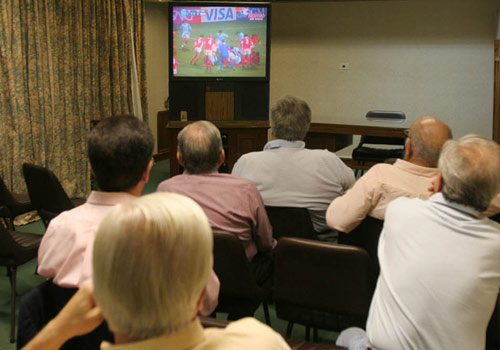 MUCHA ATENCION. El grupo sigue la actuación de Los Pumas por TV.LA GACETA / JUAN PABLO SANCHEZ NOLI