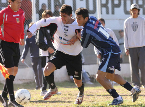 CUERPO A CUERPO. Longo obstaculiza el avance de Anzorena. Los volantes “decanos” luchan y juegan.GENTILEZA DIARIO “LOS ANDES” DE MENDOZA