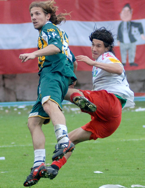 BIEN MARCADO. Oreja se cruza ante Morales. El delantero no gravitó.LA GACETA / HECTOR PERALTA