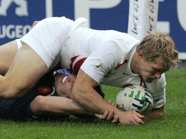 Este sábado, Inglaterra se puso en ventaja apenas 78 segundos de iniciado el encuentro con un try del Josh Lewsey tras una patada de Andy Gomarsall que traicionó al fullback francés Damien Traille, que cometió un error y dejó helado a gran parte de los 80.000 espectadores que colmaron el estadio.