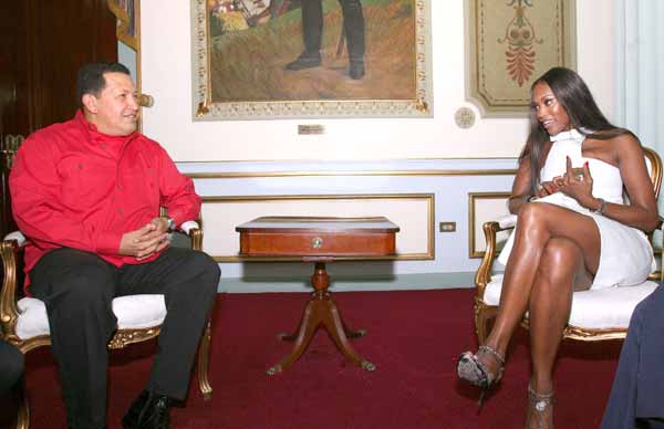 CARACAS.- Destacada en las pasarelas y conocida por los escándalos en su vida privada y su lucha humanitaria, la modelo británica Naomi Campbell expresó estar bien "impresionada" con la situación de Venezuela, luego de sostener una extensa reunión con el presidente Hugo Chávez.
