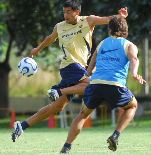 TANDIL.- El estratega de Boca, Juan Román Riquelme, negó categóricamente un enfrentamiento con el recién llegado ex jugador de Vélez y de América, de México, Lucas Castromán. "Ahora dicen que me peleé con él. Pero ya estoy acostumbrado a estos inventos, si cuando regresé de Japón también anduvieron tirando cosas que no eran ciertas", expresó en conferencia de prensa.