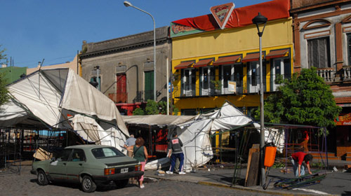 BUENOS AIRES-. Los puestos de artesanos del Caminito, en el barrio porteño de La Boca, quedaron desmantelados por un fuerte temporal que también afectó a otras zonas de Buenos Aires.