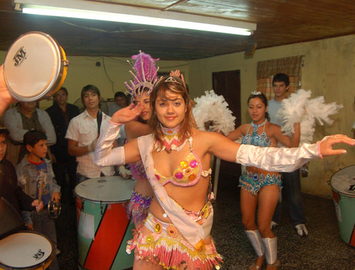 Cada comparsa en este carnaval sureño tiene un estilo bien definido y muchas se inspiran en las escolas do samba de Brasil. El barrio La Rosas es uno de los más populares. Su comparsa, "Samaba Show", lleva 12 años participando del carnaval. Cuenta con alrededor de 50 bailarines, y 70 integran la batucada. "Ensayamos desde octubre. Gracias a la colaboración de los vecinos logramos muchas cosas; todos aportan algo. Se paraliza la ciudad durante este tiempo. No se hace nada más", cuenta Corino Lastra, que dirige al grupo.